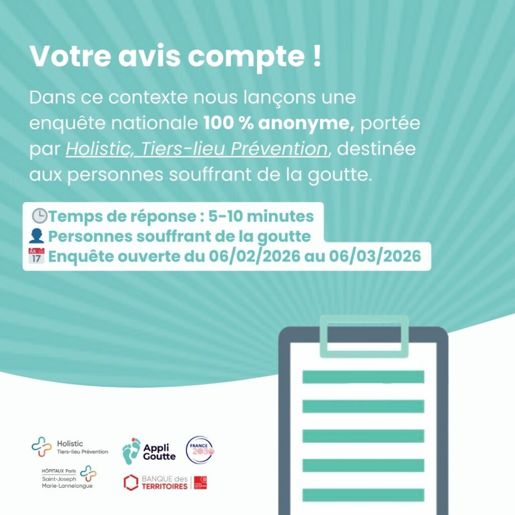 Dans ce contexte, nous lançons une enquête nationale, 100 % anonyme, destinée aux personnes souffrant de la goutte.